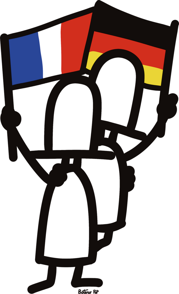 Pour les 25 ans, l’artiste a créé spécialement deux personnages symbolisant le jumelage. Cette illustration servira de fil conducteur à l’évènement. Pendant le premier semestre, les personnages se fonderont dans les quatre coins de la ville…