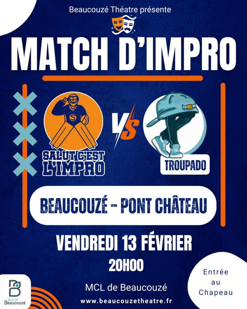 L’association Beaucouzé théâtre vous propose une soirée match d’impro entre Beaucouzé et Pont Château !