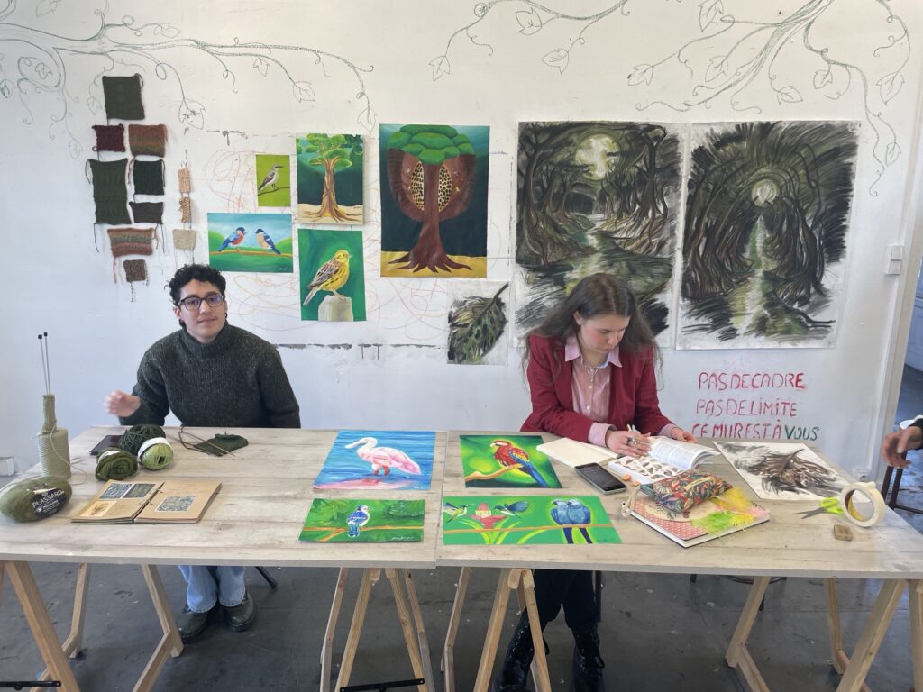 Les étudiants vous proposent dix projets en deux dimensions et cinq projets en volumes dans différents médiums : sculptures, peintures, dessins, collages et multimédia. Nous ouvrons l’exposition par des pièces interrogeant nos modes de vie et cadres sociaux contemporains. Dans cette section pop culture, économie, mais également anthropologie, sociologie et psychologie sont au cœur des questions qui motivent nos créations. Dans le second temps de l’exposition, nous vous proposons de parler de la biodiversité et du corps humain comme symbole de notre appartenance à la nature. Au fil de cette visite, vous pourrez débuter ou poursuivre avec nous, une réflexion sur l’ère anthropocène et ses conséquences sur les écosystèmes et les espaces naturels. Comment, par la création essayons-nous de construire de nouveaux récits et de nouveaux mondes ? »