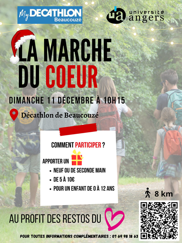 Un groupe d’étudiant(e)s de l’IUT d’Angers organisent une randonnée de 8km le dimanche 11 décembre 2022 en collaboration avec Décathlon et au profit des Restos du Coeur.