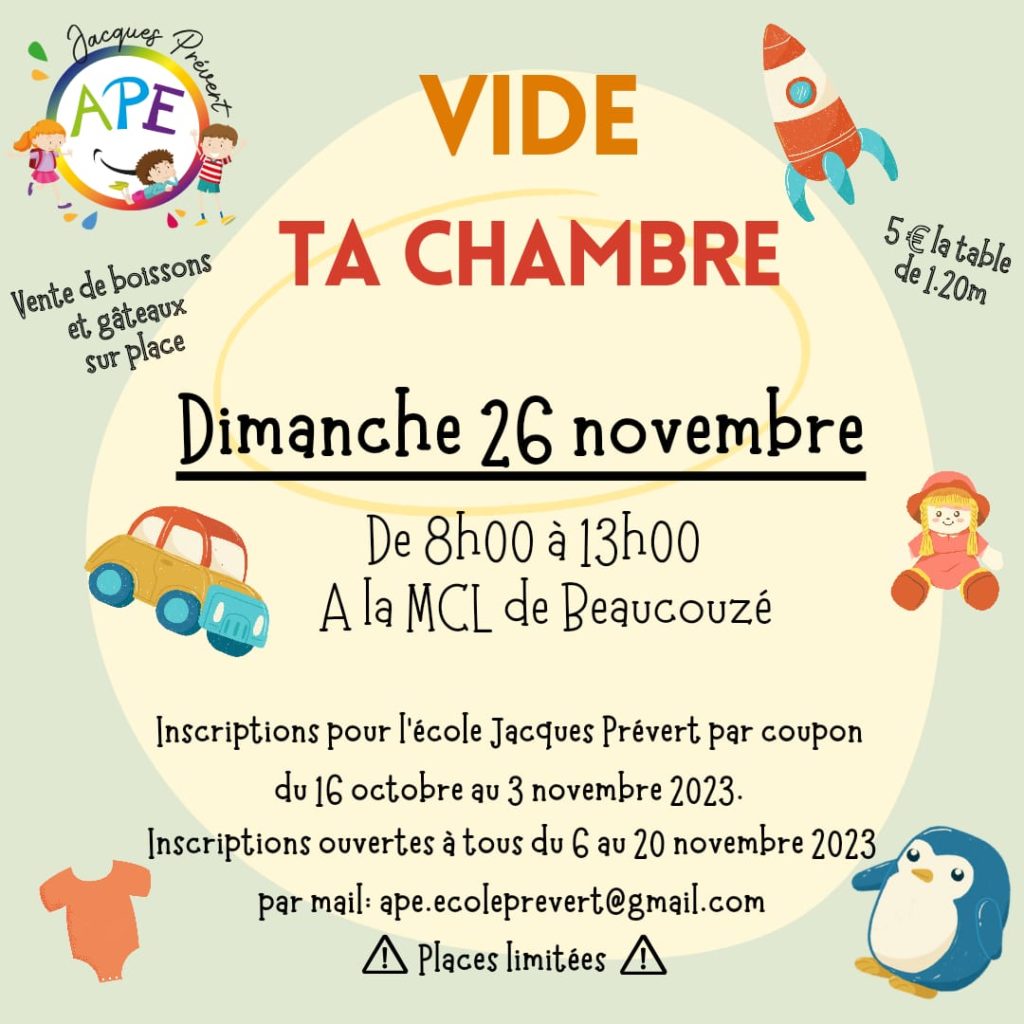 - « Vide ta Chambre » organisé le 26 novembre 2023 de 8h à 13h à la M.C.L.